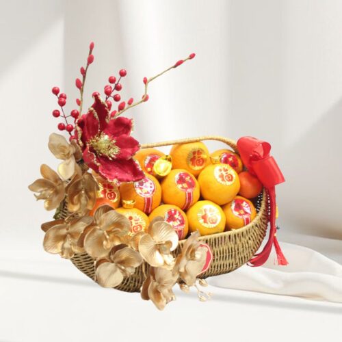 Send festive blessings with a Chinese New Year gift hamper of 28 juicy mandarins paired with refined Prosperity Florals – a meaningful gift for loved ones.