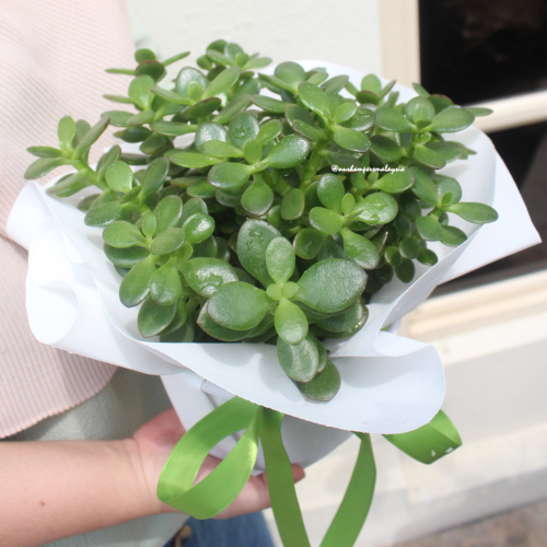 Crassula ovata is a succulent sub-shrub native to southern Africa. It features with jade green, fleshy leaves and thick stems that become woody with age. Some people believe the jade plant brings good fortune and prosperity.