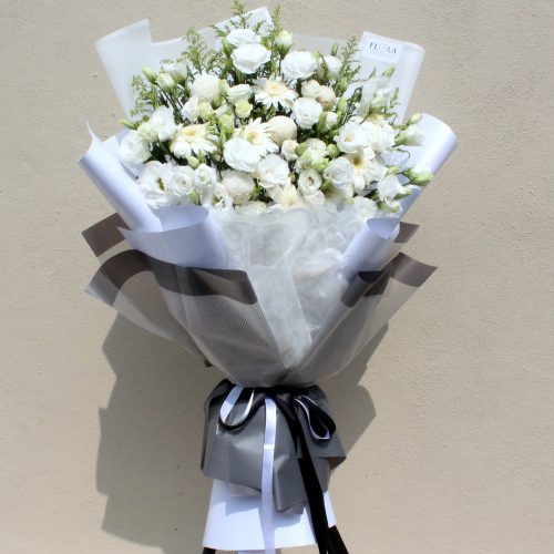 Express your heartfelt condolences with the Elegant White Deepest Sympathy Flower Stand, a graceful arrangement of white blooms symbolizing peace, purity, and remembrance. Thoughtfully curated with soft florals and lush greenery, this stand offers comfort during difficult times and serves as a respectful tribute to a loved one.