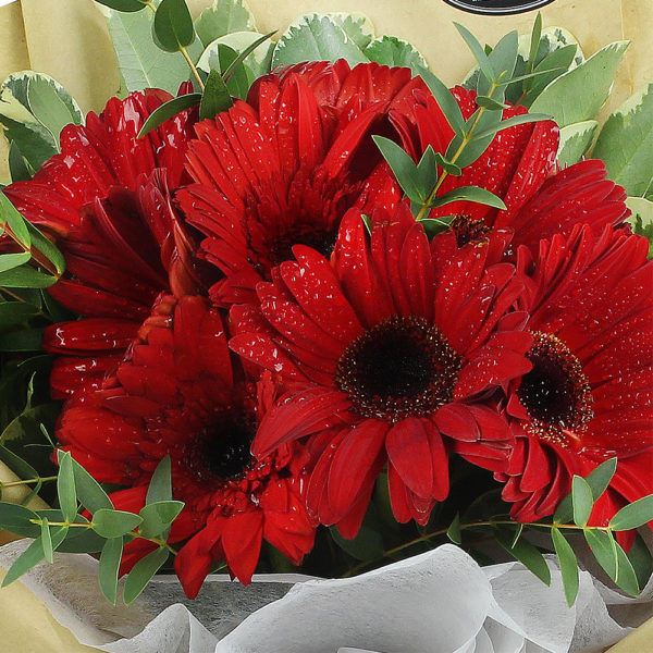 Surprise with our refined and elegant gerbera bouquet full of natural colour and wonder. This sweet collection of dark red gerberas will set your loved one’s inspiration aflame and bring romance and passion to their day. Share this beautiful red bouquet of love flowers to inspire your beau on their birthday or to celebrate your anniversary in style today.