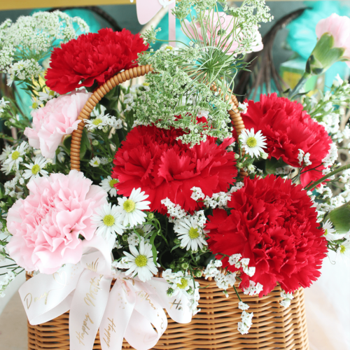 Brighten someone’s day with the Lunara Red Carnation Flower Basket – an elegant and joyful arrangement thoughtfully curated with love. This charming floral basket features: