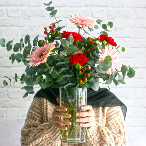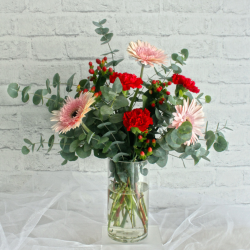 This cheerful arrangement is styled in a minimalist glass vase (D10cm x H19.5cm), making it the perfect floral gift for birthdays, congratulations, thank yous, housewarmings — or simply “just because.”