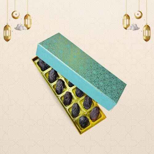 Gold Exclusive design Gift Box with ribbon filled with 300g caramel-like sweet taste of Premium Medjool Dates. Decorate with Ramadan ribbon and Gift Card. Simple gift for friends, family or business partner.