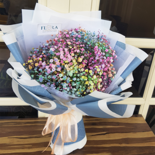 Baby Breath are symbolizes of purity, sincerity, love, compassion, trust, everlasting love, innocence, and romance. Rainbow is an eye-catching flower bouquet of colorful baby breath, lovingly arranged by our qualified florist and finished with premium wraps. Assured to impress – memorialize your special occasion with Rainbow. Rainbow is greatly perfect fit for all occasions : Birthday, Friendship, Just Because, Congrats, Love, Apology, Anniversary and Thank You. With life span of 3-5 days. It comes with free Mini Message Card & Same-Day Delivery (Terms and Conditions apply). Available for delivery within Klang Valley only.