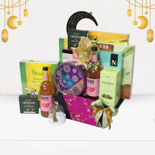 Make this Hari Raya special with the Seri Aidilfitri Hamper, featuring premium chocolates, traditional cookies, crispy snacks, and refreshing Rhubarb soda, beautifully packed in a floral gift box. Perfect for festive gifting!