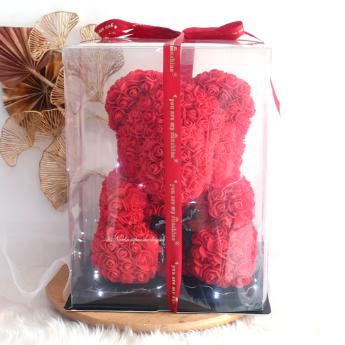 Introducing our Teddy Red Rose Flower Bear comes an Elegant Transparent Box and LED Lights. Send these special gifts to express your love for the special person!