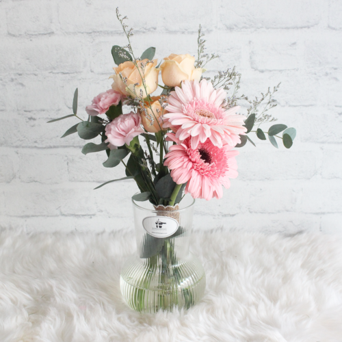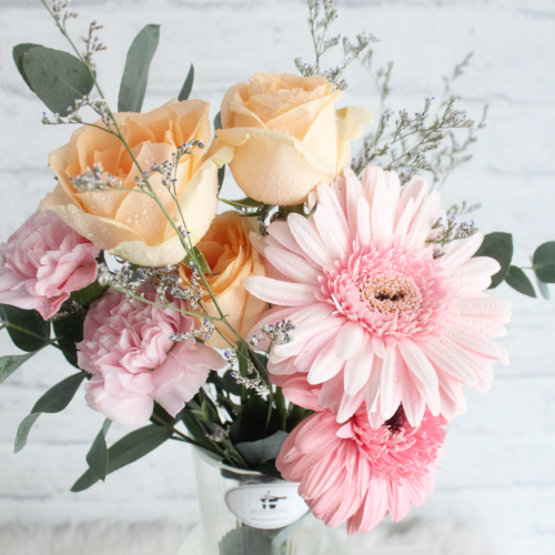 Carefully styled in a clear flower jar, this arrangement is a lovely choice for birthdays, anniversaries, or simply as a “just because” gesture to brighten someone’s day.