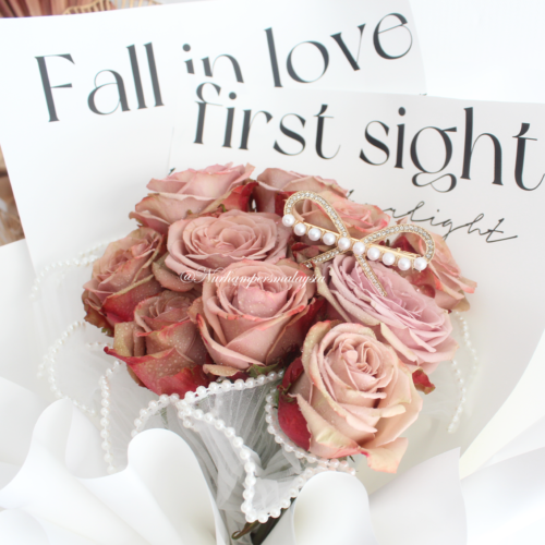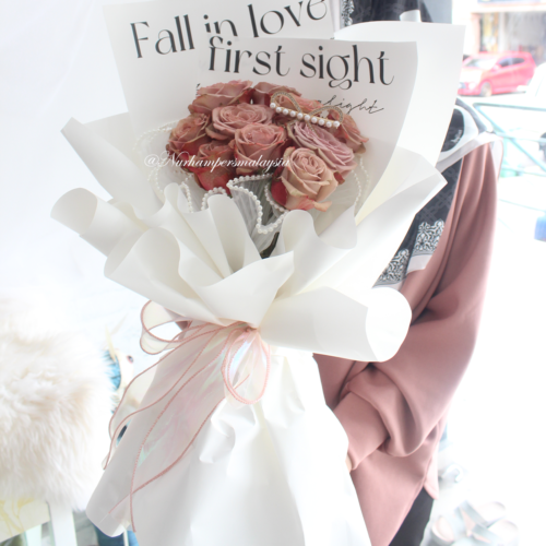 9/10 stalks of premium vintage cappuccino roses wrapped in Classis Style Wrapper. Looks great and happiness making this the perfect gift to send to a loved one.